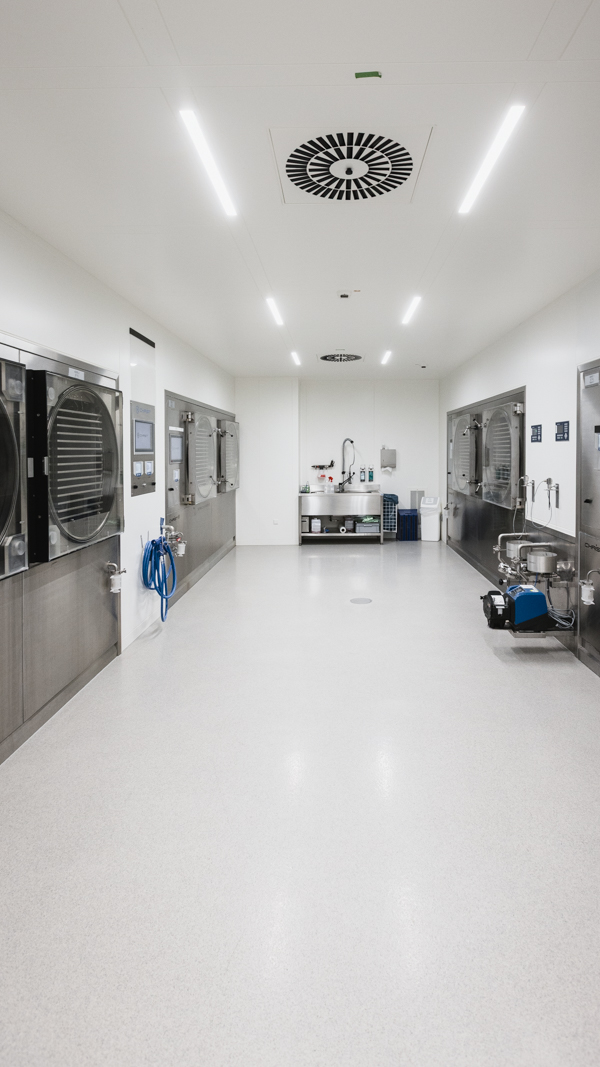 Im Reinraum der Lactosan-Biotechanlage steht eine Gefriertrocknungsanlage mit einer Eiskapazität von je 90 Litern pro Kammer zur Verfügung, die über ein Prozessleitsystem gesteuert wird. Der Gefriertrocknungsvorgang ist in die Verfahrensschritte Einfrieren, Sublimation (Gefriertrocknung) und Nachtrocknung unterteilt. Für jeden Schritte werden eigene optimierte Zeit-, Temperatur und ggf. Druckgrenzwerte vorgegeben um einen optimalen Trocknungsprozess zu ermöglichen. Im Reinraum werden Luftfeuchtigkeit und Temperatur konstant geregelt.