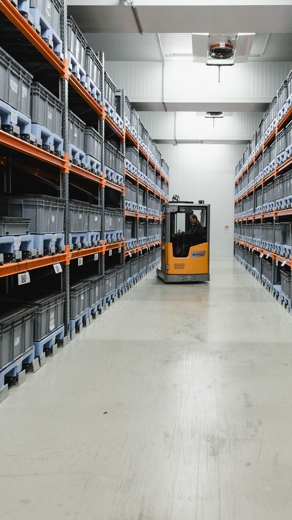 Die Lagerung der Stammhochkonzentrate erfolgt bei -20°C. Für die Lagerung der fertigen Produkte stehen je nach Bedarf Lager mit +4°C und -20°C zur Verfügung.